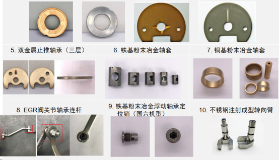 長(zhǎng)沙波德冶金材料有限公司主要產(chǎn)品包括止推軸承、浮動(dòng)軸承支撐套、止推軸承擋板、止推墊片、含油軸承等,主要應(yīng)用車用、船用、坦克和步兵戰(zhàn)車等三大應(yīng)用方向的渦輪增壓器粉末冶金軸承和黃銅合金軸承上。如下圖所示: