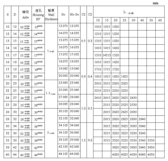 JF 雙金屬產品系列軸承標準尺寸