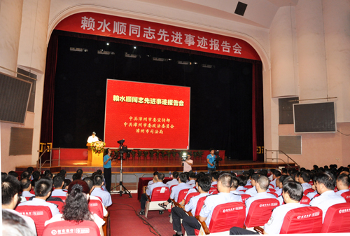 2012年8月14日上午,公司組織各支部書記赴人民劇場參加賴水順同志先進事跡報告會。市領導許榮勇、劉文標、黃雙慶、黃浦江、李惜真及市直機關干部代表、市直政法系統干警代表、企業單位代表、駐漳部隊官兵代表共700多人參加會議。市委常委、宣傳部長許榮勇主持報告會。