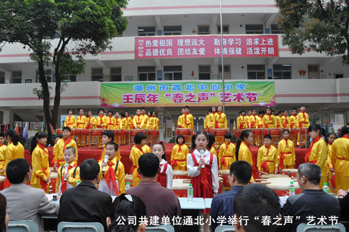 2012年3月30日上午,公司關工委委員洪麗玲、何碧珠等受我司共建單位—通北中心小學邀請,參加通北中心小學一年一度的“春之聲”校園文化藝術節活動。