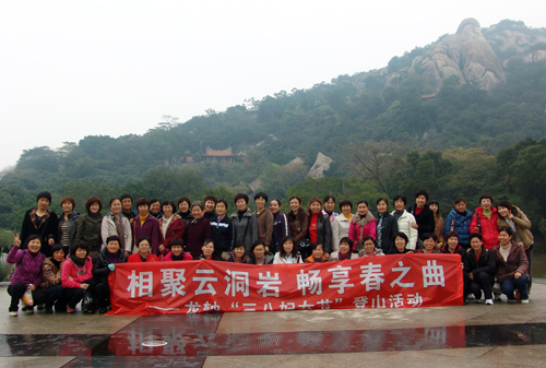 此次活動主題為“相聚云洞巖,暢享春之曲”登山活動及“保護(hù)環(huán)境,從我做起”學(xué)雷鋒志愿服務(wù)活動。當(dāng)天上午,天氣寒冷,女員工們卻個個精神氣兒十足,一早準(zhǔn)時在公司南大門集合,浩浩蕩蕩開往云洞巖。到達(dá)目的地后,清新的空氣、優(yōu)美的風(fēng)景讓大家躍躍欲試,趕緊換上統(tǒng)一整齊的服裝,以小組為單位,迫不及待地往山頂攀去,一路上,大家說說笑笑,相扶相持,時不時停下來撿起路上垃圾,為維護(hù)景區(qū)衛(wèi)生獻(xiàn)綿薄之力。大家紛紛表示,登山活動有利于展示員工蓬勃精神面貌、增強(qiáng)員工凝聚力,環(huán)保護(hù)衛(wèi)更是讓這次活動更具意義。